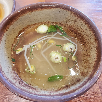 음식이 나오기 전 밑반찬이 세팅되었는데 함께 나온 콩나물냉국이 맛있었다. 콩나물국에 참깨를 가득 넣어 고소한 맛이 많이 나서 다른 식당에서 콩나물냉국이 나오면 보통 밍밍한 맛이 많은데 온기한그릇은 맛있어서 흡입하게 되어 곧 나오게 될 메인 메뉴까지 기대를 하게 만들었다.