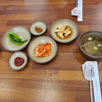 - 주문한 메뉴와 곁들일 밑반찬(콩나물국 맛있어요!)