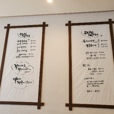 컴퓨터로 출력되는 메뉴판과 달리 온기한그릇은 어느 분이 쓰셨는지는 모르겠지만 주문 후 자꾸만 쳐다보게 되는 글씨체로 나 또한 예전에 서예 및 캘리그래피에도 관심이 있었던 터라 잘 쓰셔서 눈길이 갔다.