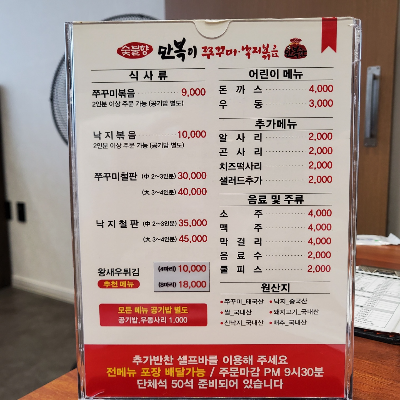 - 점촌맛집 만복이쭈꾸미 메뉴 안내