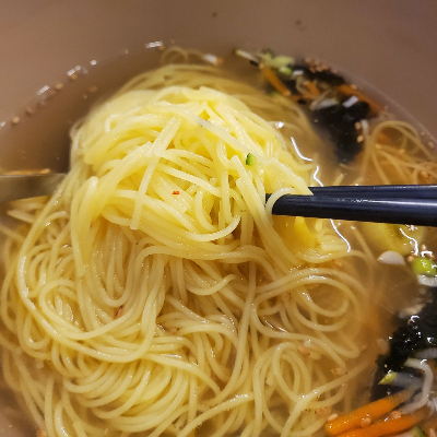 국물은 진한 느낌은 없다. 진한 멸치육수의 맛을 찾으시는 분이라면 다소 아쉬울 수 있겠으나 집에서 먹는 것 같은 깔끔 담백한 맛의 잔치국수 맛이 난다.