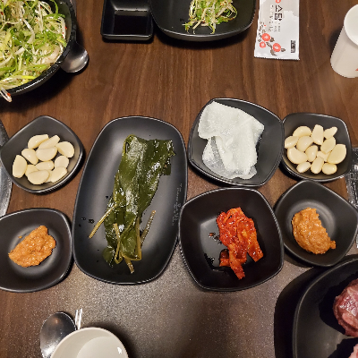 파절임, 명이나물, 콩나물절임, 쌈무 등이 제공된다.