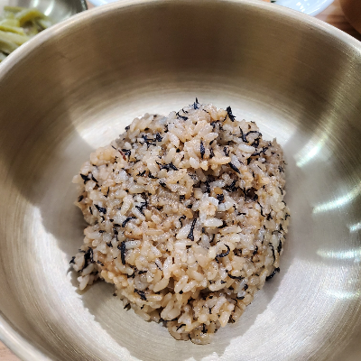 철분, 나트륨, 칼륨, 아연 등의 영양성분이 다량 함유되어 건강에 좋은 톳밥 한 끼 어떠세요? 나는 평소에도 해조류를 좋아하여 톳을 초고추장에 찍어 먹는 것도 맛있어하는데 밥으로 먹으니 씹으면 씹을수록 감칠맛이 느껴져 다음에도 와서 또 먹어야지 하는 생각이 들게끔 했다.