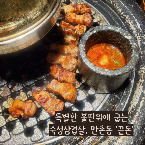 요즘 부쩍 상담받을 일이 많아진 나는 오후 내내 장소를 이동하며 조사하고, 이야기를 듣다 보니 체력의 한계를 느끼는 순간이 왔다. 이럴 땐 고소한 육즙이 팡! 터지는 고기를 먹고 싶은데 내 마음속의 원픽 중 한 곳이었던 끝돈에 방문해 보기로 했다.