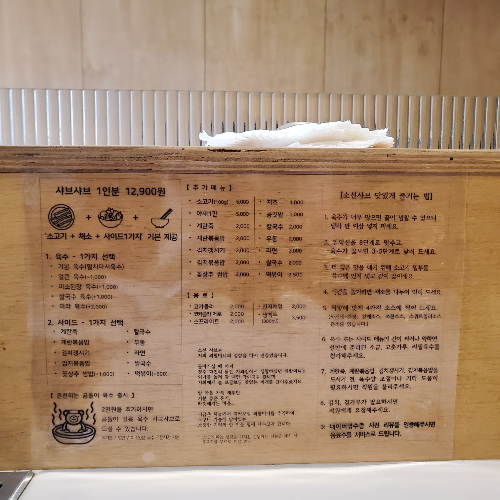 사이드 메뉴로 선택한 김치갱시기를 샤브샤브 국물에 넣어 끓여내니 양이 엄청 많아 친구도 주고 나도 먹었는데 적당히 익은 김치와 숙주나물 그리고 국물이 잘 어울려 숟가락을 놓을 수 없어 오늘 제대로 된 완벽한 식사인데? 하는 생각을 하게 했다. 무엇보다 멀리서 온 친구에게 제대로 된 한 끼를 대접한 것 같아 안심이 되었고 대구 동성로에 방문하신다면 혼자 가도 눈치 보지 않고 편안하게 먹을 수 있으며 함께 가면 사이드메뉴를 각각 다르게 선택해 나눠먹는 정을 느껴 볼 수 있을 것 같은 소선샤브의 후기를 마무리해 본다.