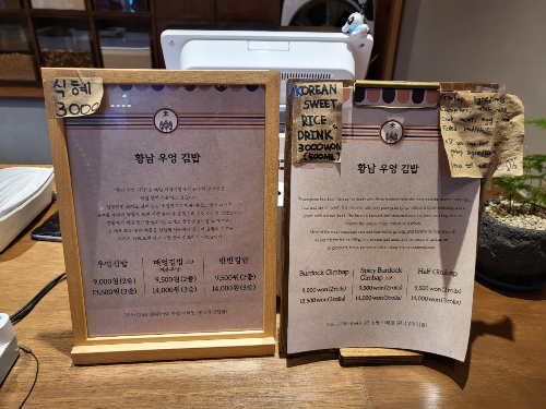 바(Bar) 형태의 식탁에서 잠시 먹고 갈 수도 있고 포장해서 갈 수 있는 황남우엉김밥이니 경주 황리단길에서 간단한 요깃거리를 찾거나 경주의 먹거리기념품으로 가져갈만한 음식으로도 충분하다는 생각이 들며 글을 마무리한다.