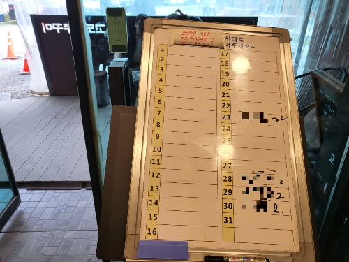고모역쭈꾸미는 늘 웨이팅이 있는 것으로 유명하여 웨이팅 대기표에 이름과 인원수를 적는다. 이 날도 약 20분의 기다림 후 실내화로 갈아 신고 들어갔는데 밖에서의 웨이팅은 있었지만 안에서는 많이 기다리지 않고 음식이 나와서 좋았다.