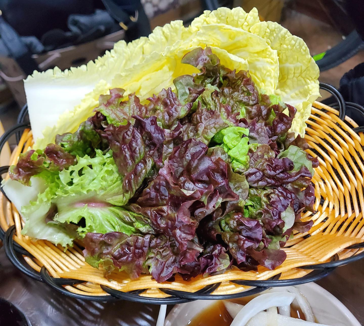 음식 주문을 하고 조금만 기다리고 있으면 상차림이 셋팅이 된다. 숯불을 넣어주시고 파절임과 쌈무, 쌈장, 마늘과 고추, 김치, 양파절임, 양념소스가 기본찬으로 나온다. 배추와 상추가 쌈야채로 제공되는데 보기에도 엄청 싱싱해보이고 먹어봐도 야채의 상태가 좋았다. 나는 고기를 먹을 때 같이 나오는 사이드도 중요하게 생각하는데 일단 야채가 싱싱한 점이 마음에 들었다.