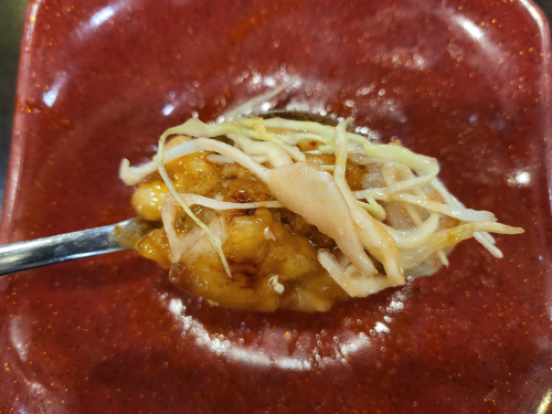 케첩에 버무린 양배추까지 함께 올려 먹으면 더 맛있다. 처음에는 고기 잡내가 났지만 먹다 보니 또 탕수육의 맛에 중독되어 야끼우동까지 함께 맛있게 먹고 나왔다.