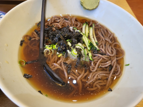 앞에 있는 친구는 모밀을 먹으면서 매운 향기가 계속 코끝을 자극한다고 했으나 실제로 먹는 나는 크게 느끼지를 못했다.