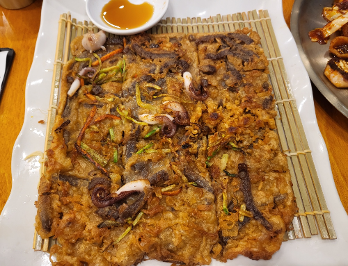 쭈꾸미와 말린 도토리묵, 호박과 당근을 넣어 부쳐낸 도토리묵전이다. 도토리묵전 안에 재료는 많이 넣어 좋았는데 묵전을 부칠 때 기름을 많이 넣으셨는지 모르겠으나 기름맛이 너무 많이 느껴져 아쉬웠다.
