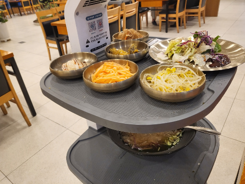 새롭게 오픈한 청담한상은 실내도 넓고 깨끗하고 단체 인원도 수용할 수 있는 공간이었다. 이후 나올 밑반찬 콩나물무침, 무생채, 김가루는 셀프바에서도 추가 이용이 가능했다.