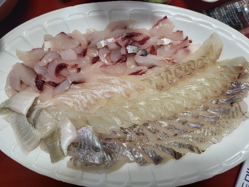 나는 회를 먹을 때 초장을 많이 찍어먹는 초장파로 회 맛을 잘 모른다. 그래서 내 기준에서 맛있는 회로 느껴진다고 생각하는 점은 비릿한 맛이 없는지와 신선함이 느껴지는지를 본다.
