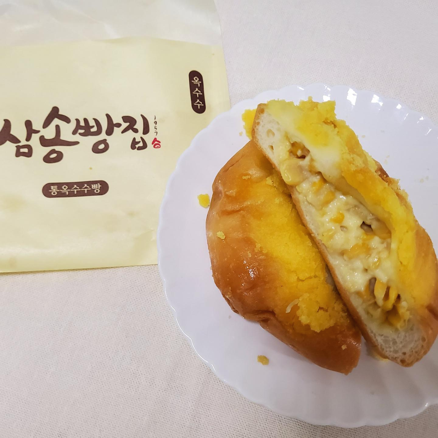 삼송빵집을 대표하는 베스트 메뉴로 통옥수수와 특제소스로 맛을 낸 빵이다.