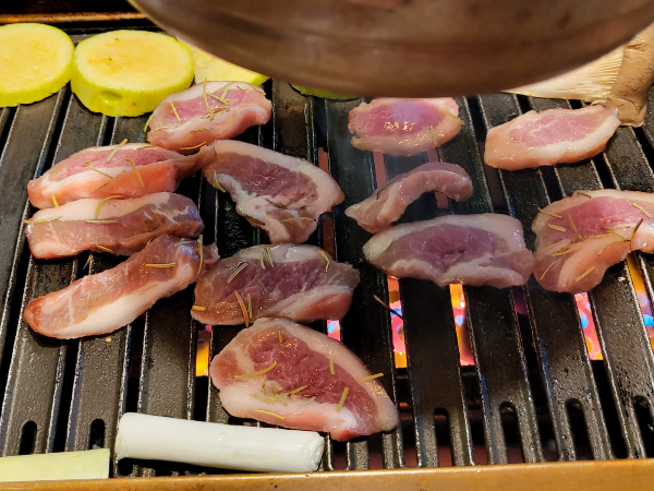 굽기 전에는 비계가 있는 부위로 봤는데 굽고 나니 살코기와 비계가 적절하게 있어 쫄깃하면서 고소함까지 함께 느낄 수 있었던 것 같다.