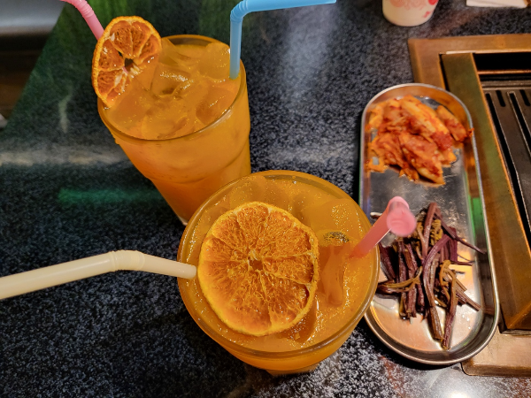 우리는 오늘 1잔에 4,000원 감귤에이드로 마실 것을 대체했는데 감귤의 맛이 엄청 진하디 진한 음료라서 맛있게 마셨다.
