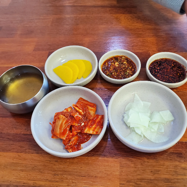 자리에 앉아 주문을 하고 기다리고 있으면 주문 메뉴에 따른 밑반찬이 나온다.