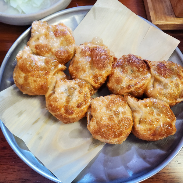 그리고 함버지기에서 제일 인기가 많이 있을 듯한 메뉴 꾼만두!! 너무 기름지지 않게 튀겨내어 바삭하고 속재료로 돼지고기와 부추가 들어간 이 만두는 간장 살짝 묻혀 한 입 먹으면 기름의 고소함과 느끼함, 풍부한 고기육즙도 느낄 수 있다.
