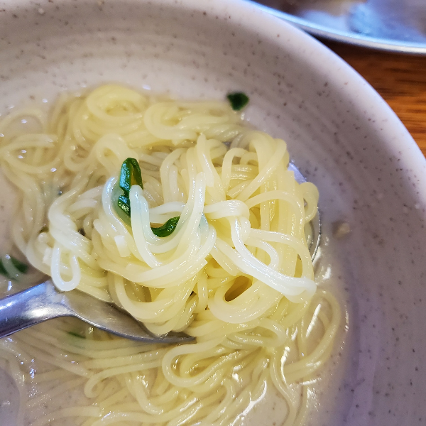 같이 제공되는 간장을 넣어 간을 맞춰 먹었다. 채 썬 애호박과 당근을 씹으며 나오는 야채즙이 멸치로 잘 우려낸 육수와 굉장히 잘 어울려서 온면을 집중해서 먹고 나왔다.