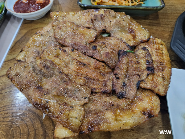 숯불향이 은은하게 배어 있는 고기 밑에는 파채가 숨어있다. 간장베이스에 적당하게 간이 잘 되어있고 고기의 잡내도 없고 부드러우며 촉촉한 맛이 있다.