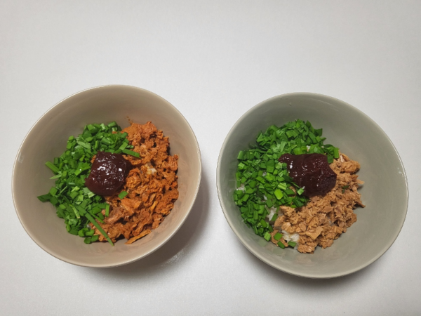 참기름이 들어간 참치여서 그런지 고소한 냄새도 나고 매콤참기름 참치는 매콤한 향이 확 올라온다.