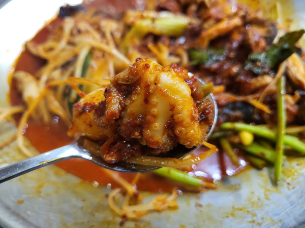 쫄깃 탱탱한 쭈꾸미에 매콤한 양념이 잘 스며들어 맛있게 먹었다.