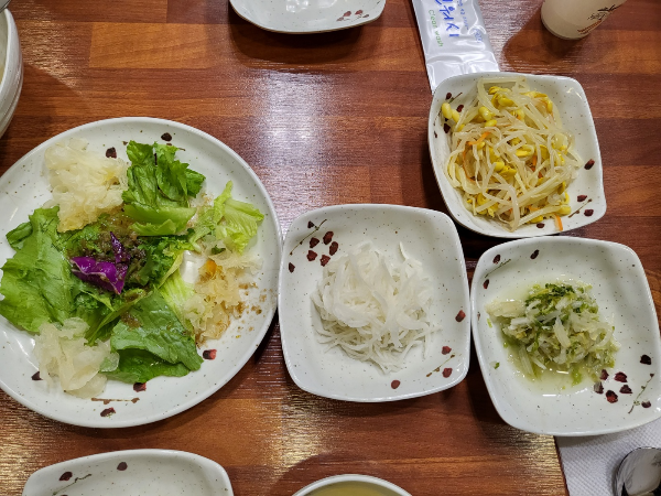 여름에는 오이냉국이 나왔었는데 날씨가 추워지니 사진에는 없지만 콩나물국이 나왔다. 샐러드를 제외하고 나머지 반찬은 셀프바에서 추가로 이용이 가능하다.