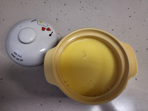 빠르고 편하고 영양까지 챙길 수 있는 식사메뉴로 5분도 채 되지 않은 시간에 촉촉한 계란찜이 완성되었다.