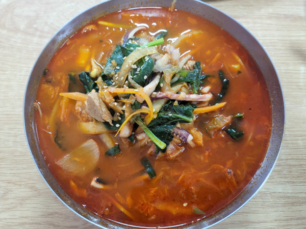 타 식당보다는 약간은 얇은듯한 부드러운 면의 식감이 좋고, 야채와 오징어, 썰은 돼지고기의 재료가 텁텁함 없이 깔끔한 국물과 잘 어울린다. 다른 곳에서는 짬뽕국물에 있는 돼지고기를 잘 먹지 않았는데 여기서는 한 번 먹어봤더니 너무 맛있어서 기억에 남는다.