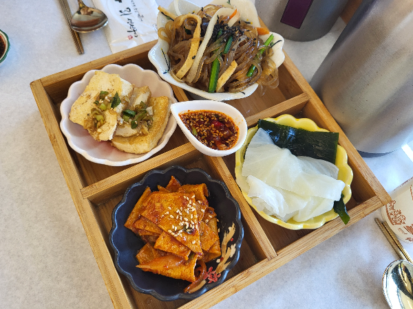 밑반찬은 셀프바를 이용해 추가로 더 가져다가 먹을 수 있고 잡채와 두부는 셀프바에 없었는데 빈 접시를 보고 직원분이 알아서 더 챙겨 주시는 친절함도 있어 좋았다.