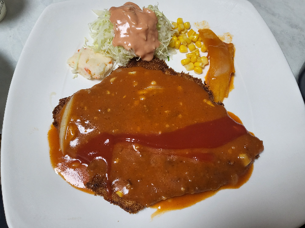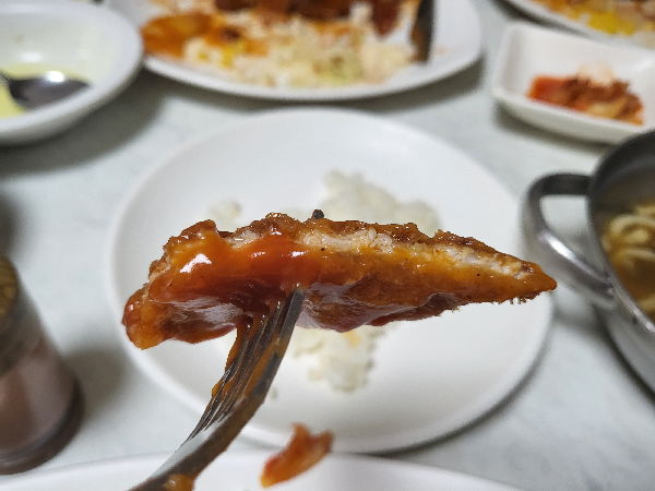 요즘은 고기가 두툼하며 바삭하게 튀겨내어 따로 제공된 소스에 찍어먹는 일식돈까스를 많이 찾는다. 나 또한 일식돈까스도 좋아하지만 가끔씩 이렇게 어릴 적 먹던 고기는 얇지만 바삭함 보다는 눅눅함이 더 느껴지는 소스가 가득 발린 경양식 돈까스도 생각날 때가 있다.