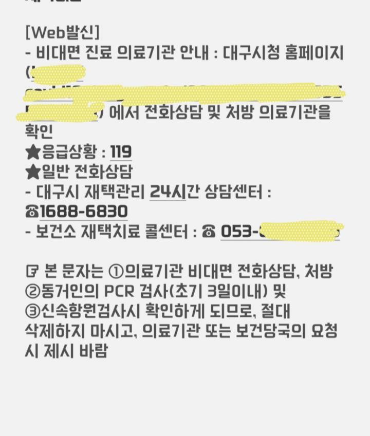 코로나 확진 자가격리 문자 안내