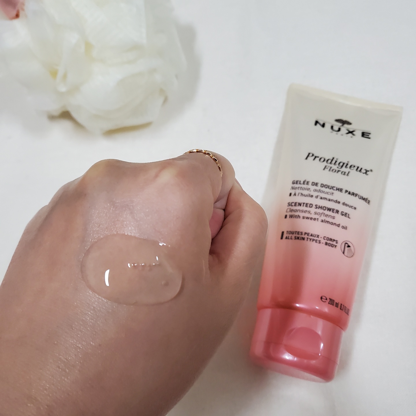 눅스 프로디쥬스 플로럴 샤워젤을 짜 보니 많이 묽지 않고 중간 정도 제형의 투명한 색이었으며 물을 묻혀서 거품을 내보니 부드러운 거품이 몽글몽글 잘 올라왔다. 자몽향과 은은하게 퍼지는 생화 향이 잘 느껴지는 눅스 플로럴 오일과 똑같은 매그놀리아 향이 피곤해서 무거워졌던 몸도 기분 좋게 일어나게 만드는 향이다. 씻고 난 후 너무 세게 남지 않고 은은하게 남았던 잔향도 좋았고 자극 없이 사용할 수 있어서 마음에 들었다.