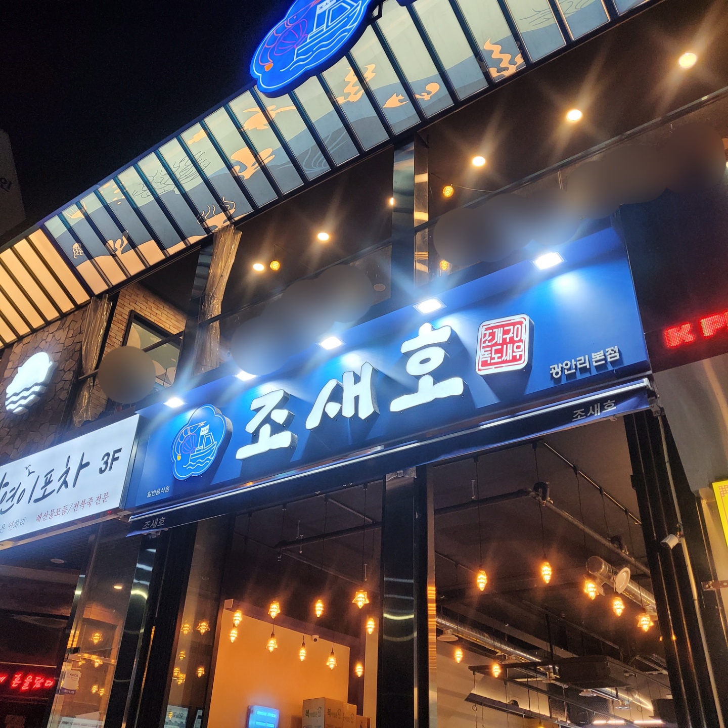 광안리 조새호는 1층과 2층이 있는데 광안대교 뷰와 바다가 더 잘 보일 것 같은 2층으로 가고 싶었어요. 그러나 아쉽지만 1층에 자리가 나서 1층으로 들어갔어요. 다음에는 꼭 2층 갈 거야!