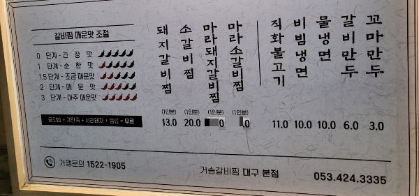 0단계 간장맛부터 3단계 아주 매운맛까지 갈비찜의 매운맛 조절이 가능하다.